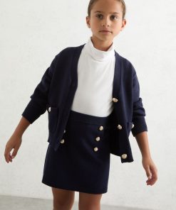 Gold-tone, crest-embossed buttons down the front of the Tillie skirt lend a nautical nod. It’s knitted to an A-line silhouette with a comfortable elasticated waistband. Knitted Crest-embossed buttons Elasticated waistband