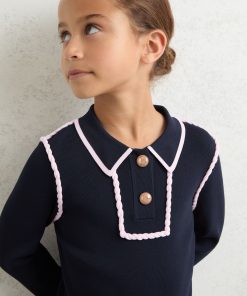 Reiss Kid’s Girls 9-13 Yrs Piped Knitted Collar Top In Navy | Navy