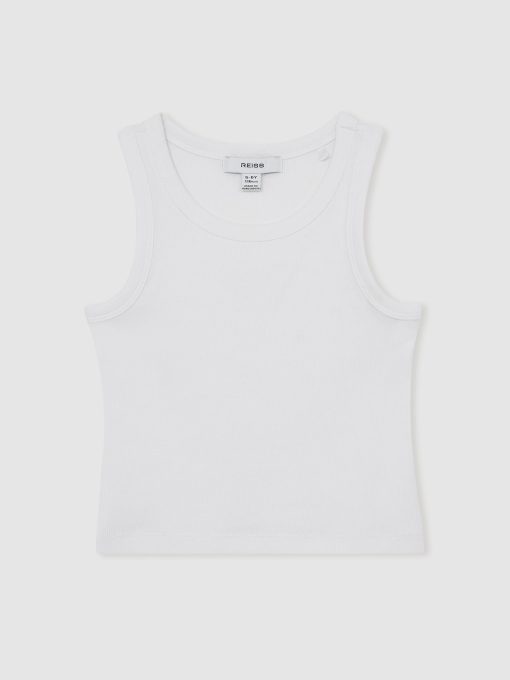 The Violet vest is crafted from fine-ribbed cotton jersey with added stretch, offering a close, comfortable fit. Its classic crew neckline makes it a versatile staple for layering or wearing solo. Cotton with stretch. Fine ribbing. Crew neckline.