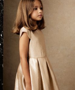 Reiss Kid’s Girls 9-13 Yrs Textured Metallic Pleated Dress In Gold | Gold