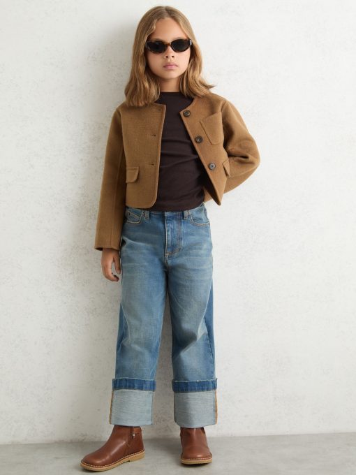 Reiss Kid’s Girls 9-13 Yrs Wool-blend Cropped Collarless Jacket In Camel | Camel
