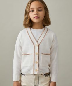 Reiss Kid’s Girls 9-13 Yrs Wool-blend Stripe-detail Cardigan With Cashmere In Cream | Cream