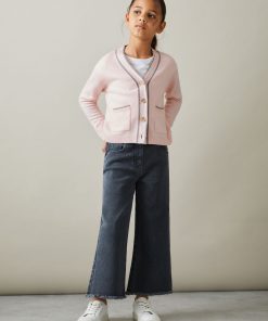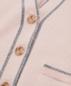 Fine wool yarns are mixed with cashmere for the Pink Juni button-through cardigan, ensuring ultimate comfort and breathability. Its relaxed fit is perfect for layering over T-Shirts and roll necks alike. Wool-cashmere blend Button-front closure Patch pockets Ribbed trims Contrast tips Fashioning seams to reverse Relaxed fit