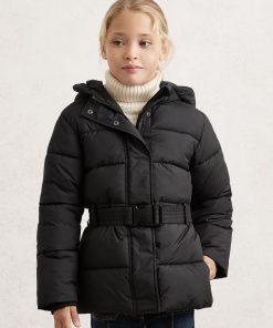 The Ava puffer coat is quilted for warmth and styled with a fixed hood and storm cuffs to protect against the elements. An elasticated belt with a subtly branded buckle secures at the waist, while a concealed zip and press-stud placket complete the sleek silhouette. Quilted construction, fixed hood, Storm cuffs with thumbholes, Fleece-lined press-stud pockets, Elasticated buckled belt, Front zip with press-stud placket.