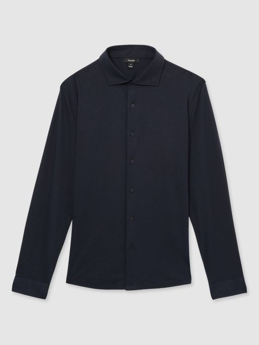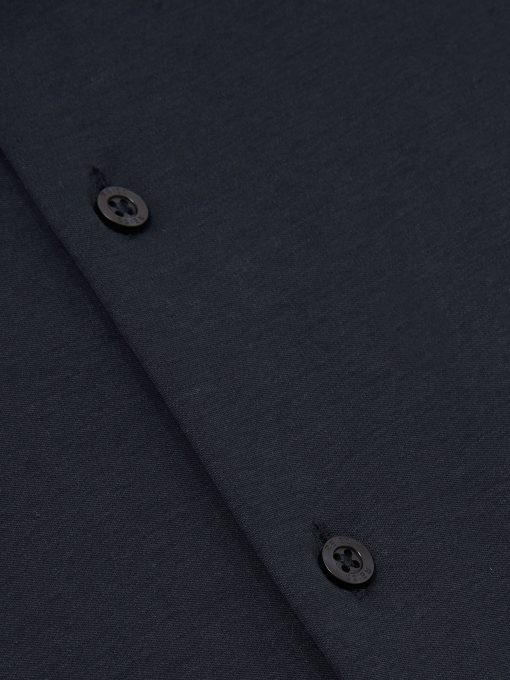 The Navy Duke shirt is crafted from 100% Cotton jersey with an air-water finish for a soft, premium feel. It has a classic spread collar, buttoned cuffs, and a French placket for a clean, refined look. 100% Cotton jersey Air water finish Spread collar Button cuffs French button placket The model is wearing a size M. Measurements of model: Height 6ft 2.5″ / 189cm.