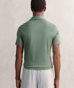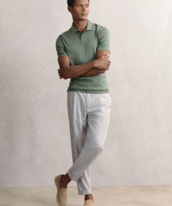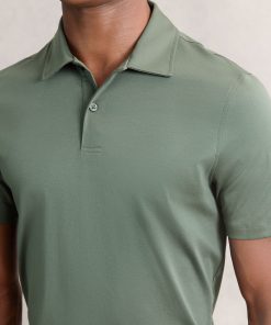 The Kale Green Earl polo shirt is crafted from 100% cotton with an air water finish for a soft, premium feel. It has a classic polo collar and short button placket for a clean, refined look. 100% cotton Air water finish Short button placket Short sleeves The model is wearing a size M. Measurements of model: Height 6ft 2.5″ / 189cm.