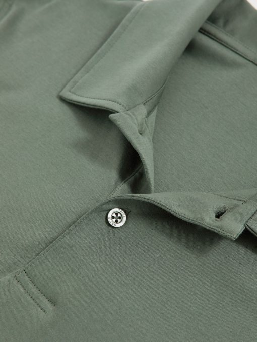 The Kale Green Earl polo shirt is crafted from 100% cotton with an air water finish for a soft, premium feel. It has a classic polo collar and short button placket for a clean, refined look. 100% cotton Air water finish Short button placket Short sleeves The model is wearing a size M. Measurements of model: Height 6ft 2.5″ / 189cm.