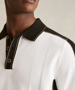 The Optic White/Green Pentel polo shirt blends a lightly textured knit with bold colour-blocking, accented by bright tipping for a sporty, modern feel. Finished with ribbed trims and a classic button placket, it offers a polished take on casual style. Textured knit Colour-blocking with tipping Polo collar Ribbed hem and cuffs Front button placket The model is wearing a size M. Measurements of model: Height 6ft 2.5″ / 189cm.
