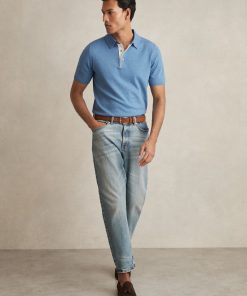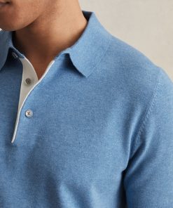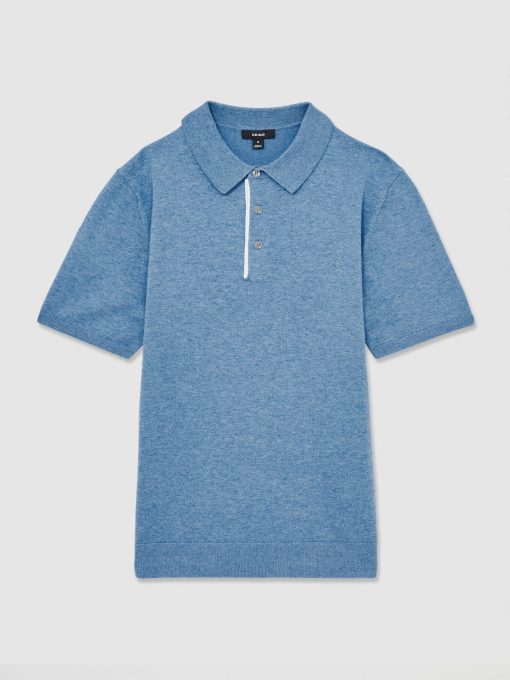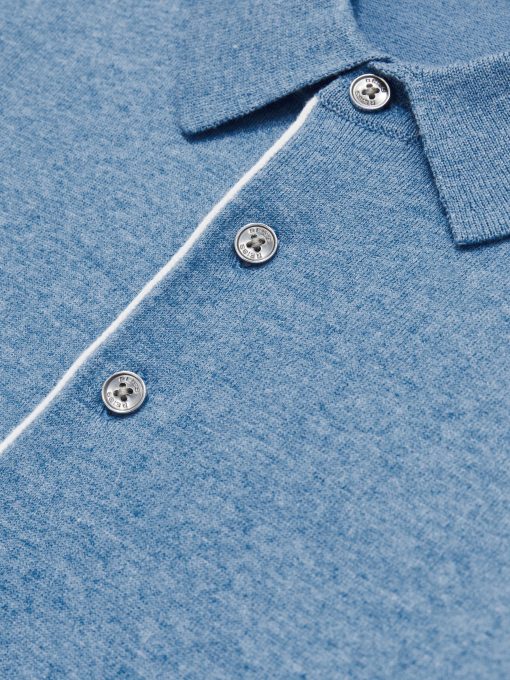 A blue contrasting button placket refreshes Finch’s classic polo shirt silhouette. Crafted from a cotton-blend compact knit, it offers a polished, refined look. Cotton blend Compact knit Mélange Contrasting short button placket Polo collar Short sleeves The model is wearing a size M. Description: Measurements of model: 6ft 2″ / 189cm.
