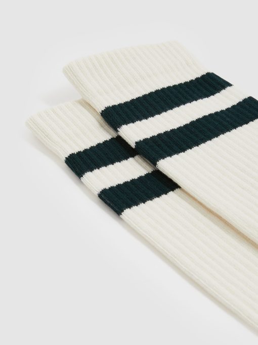 Reiss Men’s Cotton-blend Double-stripe Socks In Forest Green/ecru | Forest Green & Ecru
