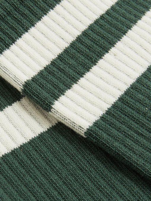 The Pine Green/Ecru Henman socks are crafted from a soft cotton blend with a rib-knit finish. Two contrasting stripes add a sporty touch to this classic style. Cotton blend Rib knit Contrasting stripes