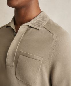 Reiss Men’s Cotton Concealed-placket Polo Shirt In Light Sage Green | Light Sage Green