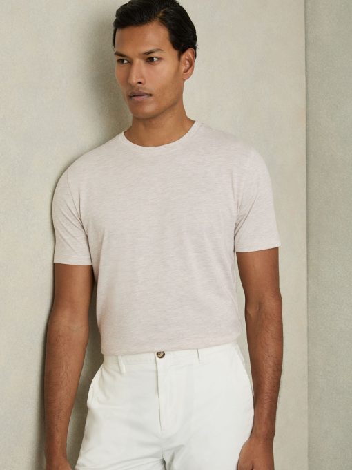 Crafted from a soft cotton blend with slight stretch and a subtle marled finish, this lightweight crew-neck Wheat Melange T-Shirt is integral to building your Reiss wardrobe. Cotton blend Marled finish Crew neckline Short sleeves The model is wearing a size M. Measurements of model: Height 6ft 2.5″ / 189cm.