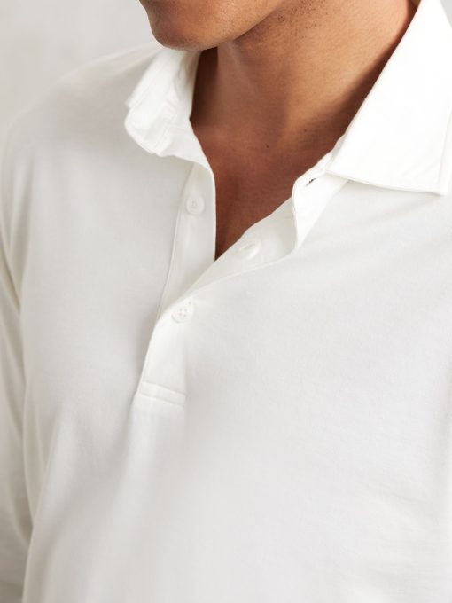 Crafted from ultra-soft Supima cotton, the White Porofino long sleeve polo shirt presents a luxurious take on a timeless style. It’s finished with a half button placket and buttoned cuffs. 100% Supima cotton Polo collar Long sleeves Buttoned cuffs Half button placket