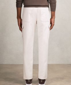 The Stone Rogan trousers are crafted from cotton with a touch of stretch and tailored to a tapered silhouette. Pleated cargo pockets add utilitarian appeal to this casual wardrobe essential. Cotton with stretch Tapered Pleated cargo pockets Five-pocket design Hook-and-bar with zip The model is wearing a size 32. Measurements of model: Height 6ft 2.5″ / 189cm. Regular inside leg length 28.5″ / 73cm.