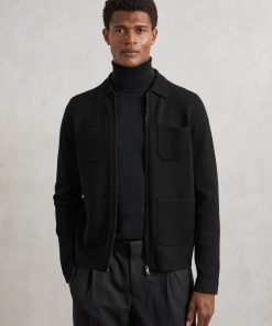 The Roberto cardigan is crafted from a weighty, compact knit, shaped into a softly structured silhouette. Four rib-knit pockets introduce a tactile, utilitarian touch, while a dual zip completes the modern finish. Compact knit. Four rib-knit patch pockets. Rib-knit collar and sleeves. Dual front zip.