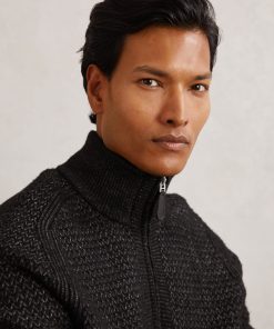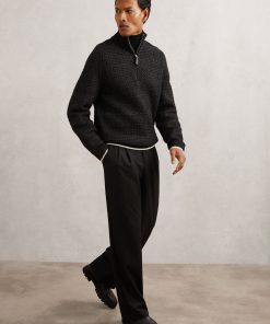 The Stockdale jumper is elevated by a subtle chevron-knit pattern, crafted with soft wool and a brushed finish for added warmth. A half-zip with leather pull completes this refined layer.Crafted with woolBrushed finishChevron knitRibbed trimsHalf-zip with leather pull