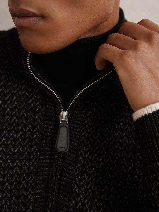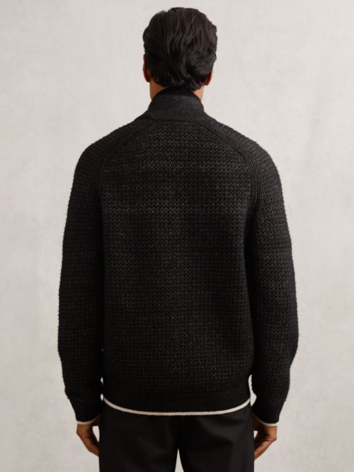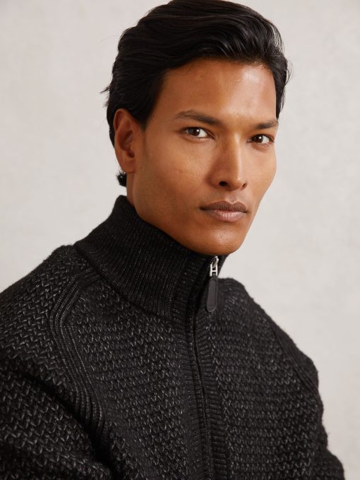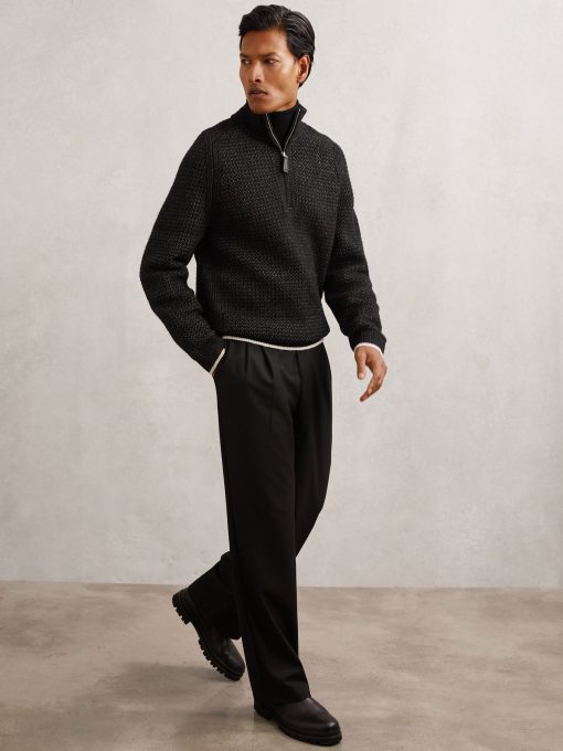 The Stockdale jumper is elevated by a subtle chevron-knit pattern, crafted with soft wool and a brushed finish for added warmth. A half-zip with leather pull completes this refined layer.Crafted with woolBrushed finishChevron knitRibbed trimsHalf-zip with leather pull