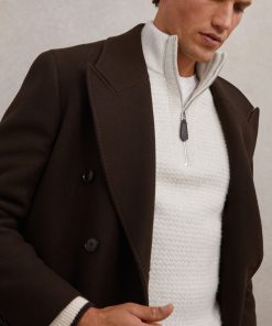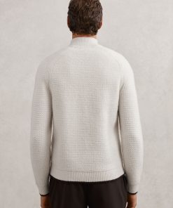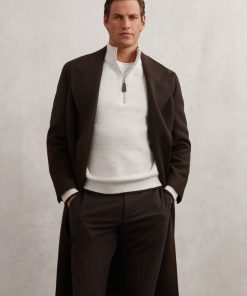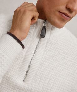 Reiss Men’s Half-zip Chevron-knit Jumper With Wool In Winter White | Winter White