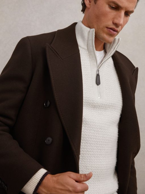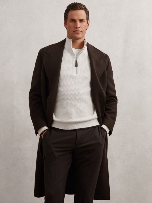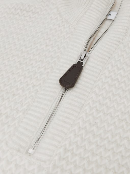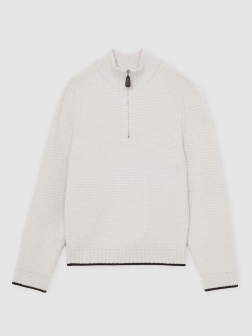 Reiss Men’s Half-zip Chevron-knit Jumper With Wool In Winter White | Winter White