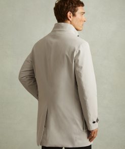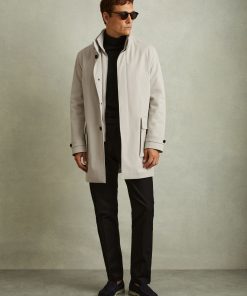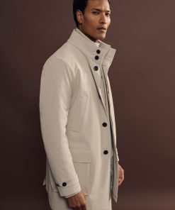 The Stone Player overcoat is crafted with a water-resistant outer and multiple pockets for functionality. For extra warmth, it features a removable funnel-neck insert. Water-resistant outer Removable funnel-neck insert Button-front closure Multiple fleece-lined pockets Adjustable buttoned cuffs Quilted lining Press the vent to reverse Mid-length The model is wearing a size M. Measurements of model: 6ft 2″ / 187cm. Regular centre back neck to hem 36″ / 91cm.