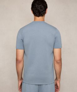 The Bradley Airforce Blue T-Shirt is crafted from a soft interlock jersey with a subtle mélange finish for a comfortable, refined look. A classic crew neckline and short sleeves complete the casual staple. Interlock jersey Mélange finish Crew neckline Short sleeves The model is wearing a size M. Measurements of model: Height 6ft 2.5″ / 189cm.