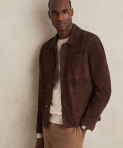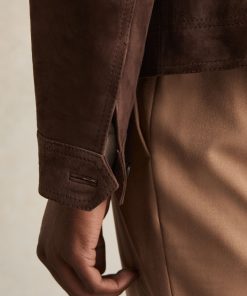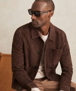 The Wilstead jacket, crafted from ultra-soft suede, offers a sleek update to the classic trucker silhouette. Horn-effect buttons fasten the cuffs and front placket, while three patch pockets enhance the workwear-inspired design. 100% suede. Three patch pockets. Button cuffs. Lined Front buttons. Regular centre back neck to hem 26″ / 66cm.