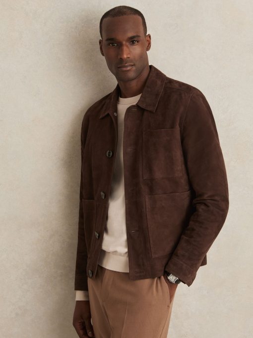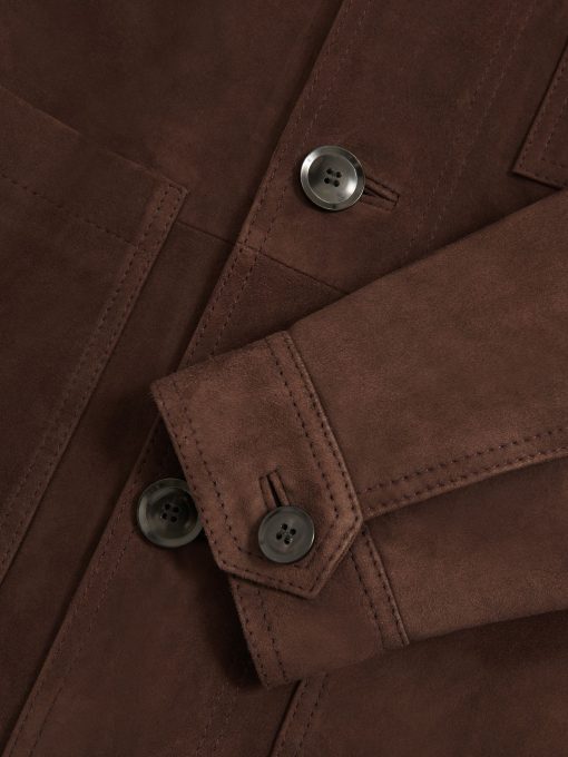 The Wilstead jacket, crafted from ultra-soft suede, offers a sleek update to the classic trucker silhouette. Horn-effect buttons fasten the cuffs and front placket, while three patch pockets enhance the workwear-inspired design. 100% suede. Three patch pockets. Button cuffs. Lined Front buttons. Regular centre back neck to hem 26″ / 66cm.