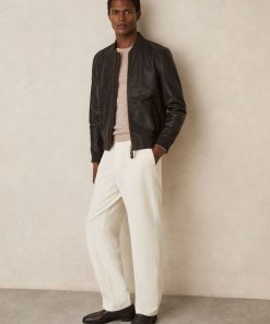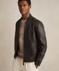 The Cast bomber jacket is expertly crafted from supple grained leather, accented by gold-tone hardware. It’s finished with ribbed trims and press-stud pockets. Grained leather Bomber style Press-stud side pockets Ribbed trims Dual front zip The model is wearing a size M. Measurements of model: Height 6ft 2.5″ / 189cm. Regular centre back neck to hem 26.5″ / 67cm.