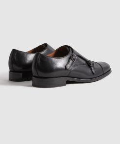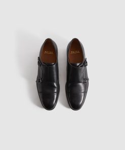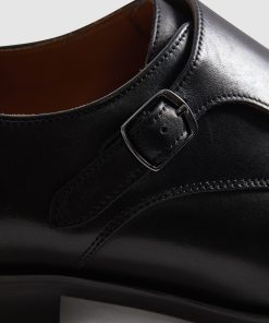 Structured, high-shine black leather is cut into a round-toe silhouette with double monk straps across the front. The Black Amalfi shoes are complete with a contrast leather lining. 100% Leather Double monk straps Rounded toe Contrast leather lining