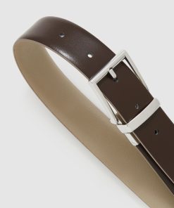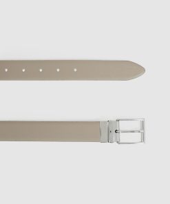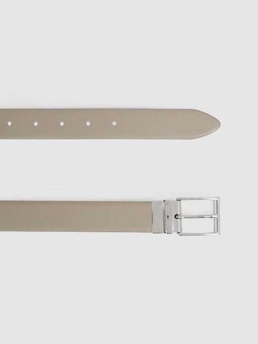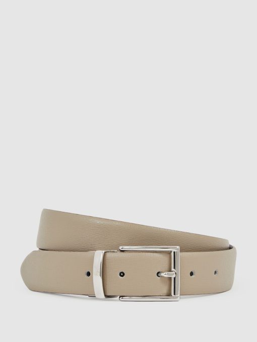 Reiss Men’s Leather Reversible Belt In Stone/dark Brown | Stone & Dark Brown