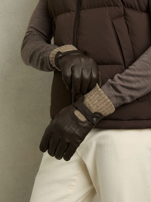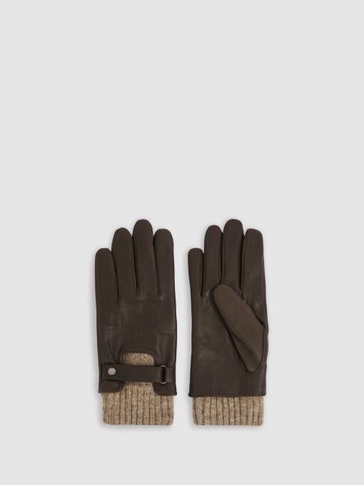 Reiss Men’s Leather Ribbed-cuff Gloves In Dark Brown | Dark Brown
