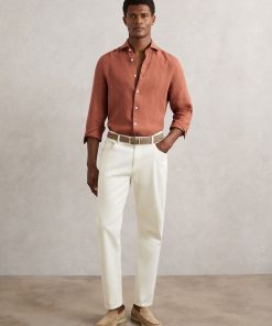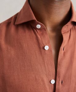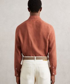 Engineered from a lightweight, linen fabrication with a subtle marl texture, the olive Ruban shirt marries classic comfort with a versatile style. Find the perfect pairing in our new arrivals. 100% linen Cutaway collar. Full buttoned placket. Long sleeves. Curved sleeve cuffs. Regular fit.