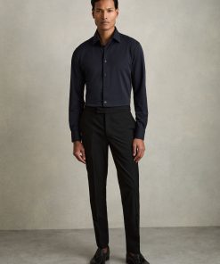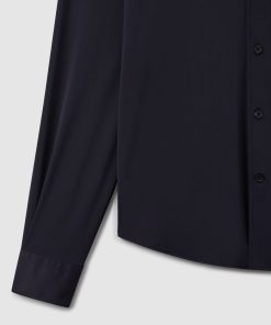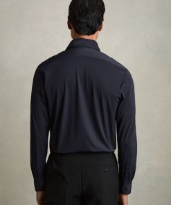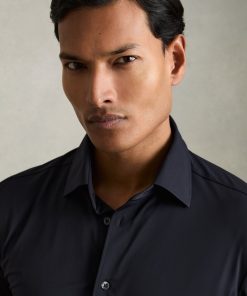 The Navy Voyager travel shirt is made with comfort-stretch fabric, offering crease resistance and quick-drying properties. UV protection and high breathability ensure optimal performance throughout the year. Comfort-stretch Crease-resistant Quick-drying UV-protected point collar Button cuffs French button placket The model is wearing a size M. Description: Measurements of model: 6ft 2″ / 189cm.
