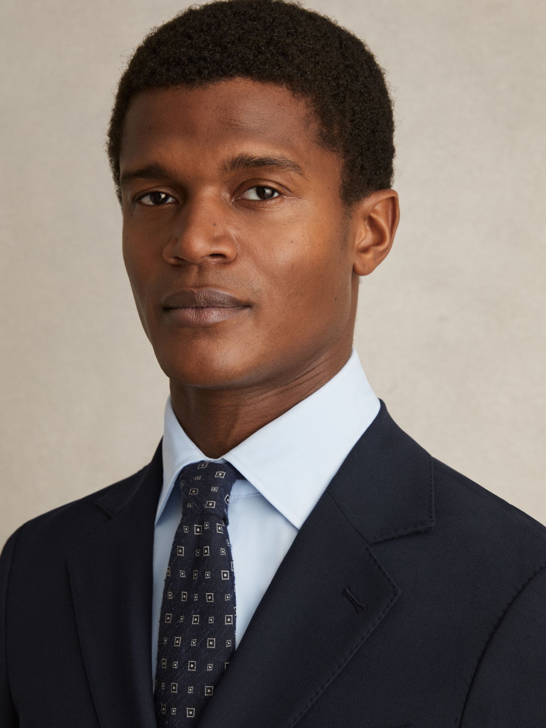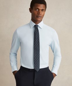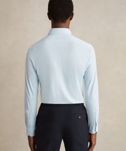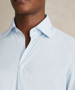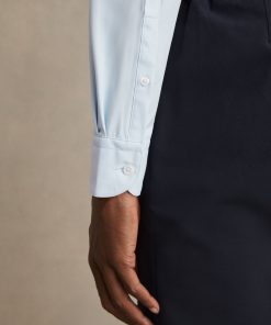 The Soft Blue Voyager travel shirt is made with comfort-stretch fabric, offering crease resistance and quick-drying properties. UV protection and high breathability ensure optimal performance throughout the year. Comfort-stretch Crease-resistant Quick-drying UV-protected point collar Button cuffs French button placket The model is wearing a size M. Measurements of model: Height 6ft 2.5″ / 189cm.