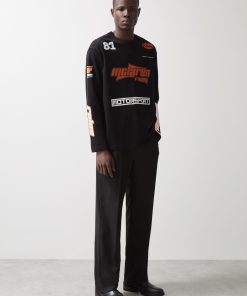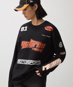 The Black Oval long-sleeve T-Shirt is crafted from 100% cotton and cut to an oversized fit. Rubberised McLaren Formula 1 Team logos accent the design, while Lando Norris's racing number, 04, is printed on the shoulder for a personalised touch. 100% cotton McLaren F1 Team rubberised logos Rubberised 04 number at the shoulder Crew neckline Oversized Unisex fit Presenting the Reiss x McLaren Formula 1 Team Collection Season 02, our exclusive collaboration with the McLaren Formula 1 Team. The male model is wearing a size M. The female model is wearing a size S. Measurements of male model: 6ft 2.5″ / 189cm. Measurements of female model: 5ft 10″ / 178cm.