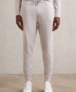 The Wicker Brown Melange Billings joggers are crafted from a merino wool for a luxuriously soft feel. Cuffed ankles create a tapered silhouette, while an elasticated drawstring waist elevates their relaxed profile. Merino wool blend Tapered leg Elasticated drawstring waist Side slip pockets Cuffed ankles