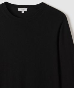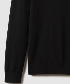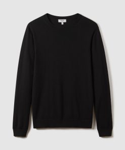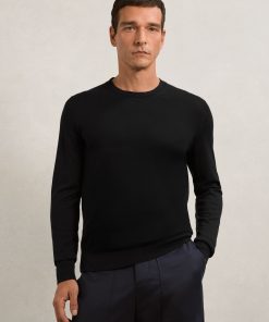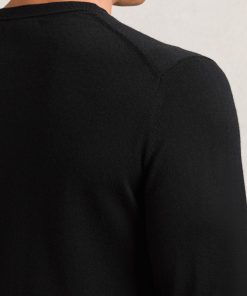 Knitted from soft merino wool, the Black Wessex crew-neck jumper is an ultra-soft, warming and versatile wardrobe essential. 100% Merino wool Crew neckline Long sleeves The model is wearing a size M. Measurements of model: 6ft 2″ / 188cm.
