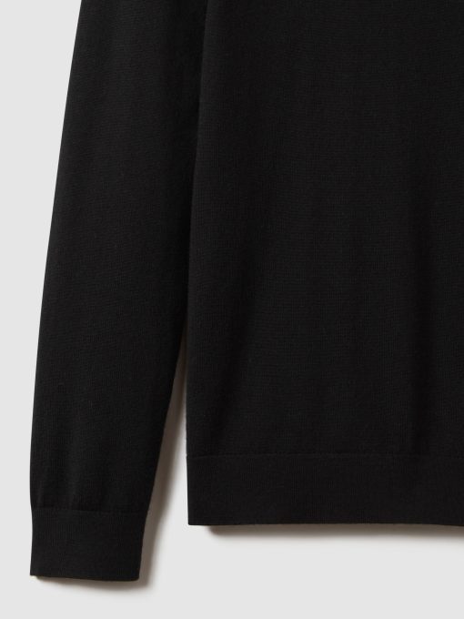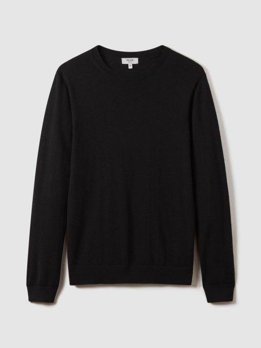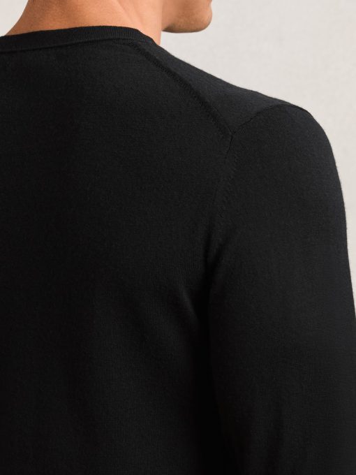 Knitted from soft merino wool, the Black Wessex crew-neck jumper is an ultra-soft, warming and versatile wardrobe essential. 100% Merino wool Crew neckline Long sleeves The model is wearing a size M. Measurements of model: 6ft 2″ / 188cm.