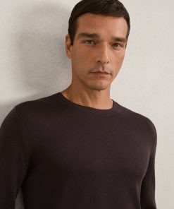 Knitted from soft merino wool, the Dark Bordeaux Wessex crew-neck jumper is an ultra-soft, warming and versatile wardrobe essential. 100% Merino wool Crew neckline Long sleeves The model is wearing a size M. Measurements of model: Height 6ft 2.5″ / 189cm.
