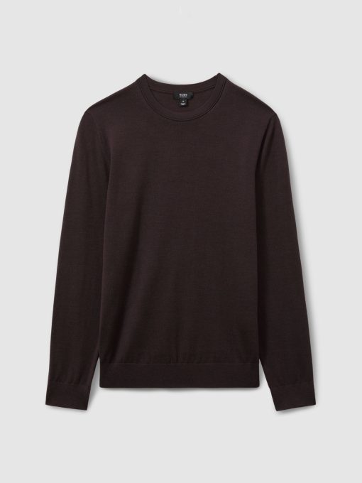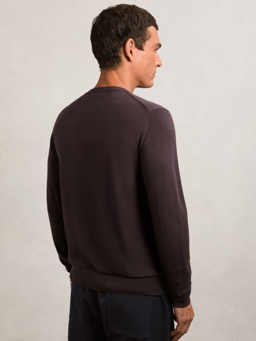 Knitted from soft merino wool, the Dark Bordeaux Wessex crew-neck jumper is an ultra-soft, warming and versatile wardrobe essential. 100% Merino wool Crew neckline Long sleeves The model is wearing a size M. Measurements of model: Height 6ft 2.5″ / 189cm.