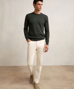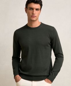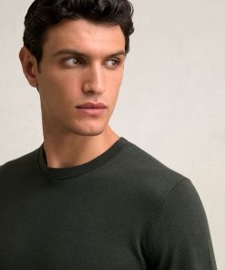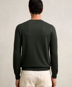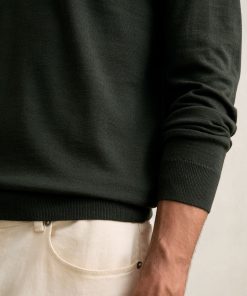 The Dark Military Green Wessex jumper is knitted from merino wool for a soft, lightweight feel, finished with a classic crew neckline and ribbed trims. 100% Merino wool Crew neckline Long sleeves Rib-knit trims The model is wearing a size M. Measurements of model: 6ft 3″ / 190.5cm.