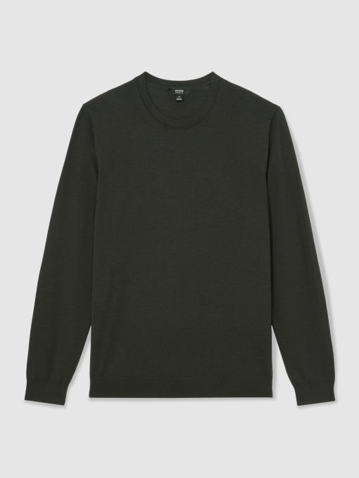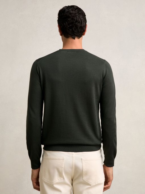 The Dark Military Green Wessex jumper is knitted from merino wool for a soft, lightweight feel, finished with a classic crew neckline and ribbed trims. 100% Merino wool Crew neckline Long sleeves Rib-knit trims The model is wearing a size M. Measurements of model: 6ft 3″ / 190.5cm.