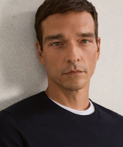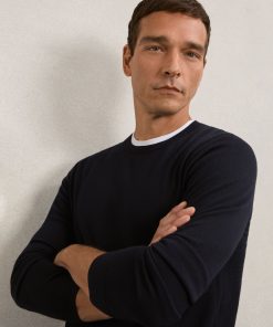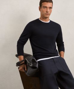 Knitted from soft merino wool, the Navy Wessex crew-neck jumper is an ultra-soft, warming and versatile wardrobe essential. 100% Merino wool Crew neckline Long sleeves The model is wearing a size M. Measurements of model: 6ft 2″ / 188cm.