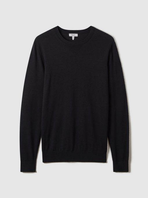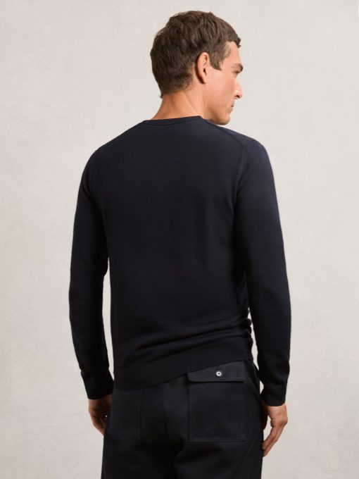 Knitted from soft merino wool, the Navy Wessex crew-neck jumper is an ultra-soft, warming and versatile wardrobe essential. 100% Merino wool Crew neckline Long sleeves The model is wearing a size M. Measurements of model: 6ft 2″ / 188cm.