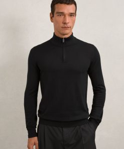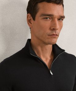 The Blackhall jumper is a classic half-zip style, crafted from extra-fine merino wool. A finely ribbed hem and cuffs complete the look. 100% merino wool Funnel neck Half zip Ribbed hem and cuffs The model is wearing a size M Measurements of model: Height 6ft 2.5 / 189cm