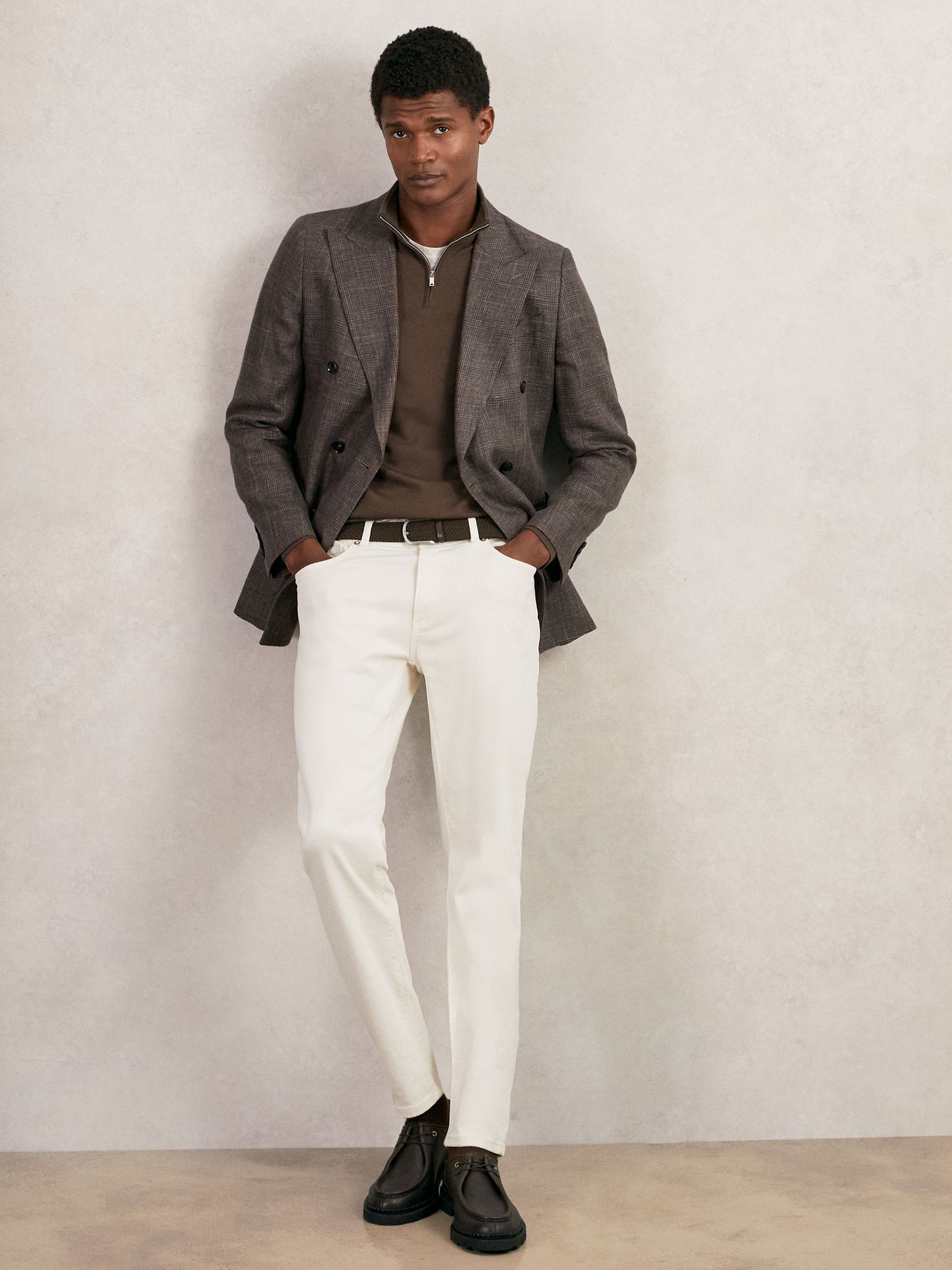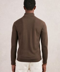 The Chocolate Brown Blackhall jumper is a classic half-zip style, crafted from extra-fine merino wool. A finely ribbed hem and cuffs complete the look. 100% Merino wool Funnel neck Half zip Ribbed hem and cuffs The model is wearing a size M. Measurements of model: Height 6ft 2.5″ / 189cm.