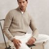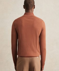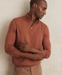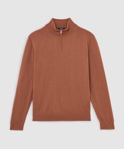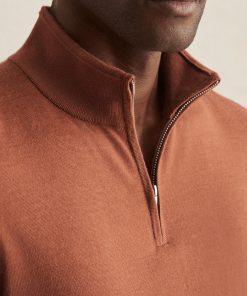 The Cinnamon Brown Blackhall jumper is a classic half-zip style, crafted from extra-fine merino wool. A finely ribbed hem and cuffs complete the look. 100% merino wool Funnel neck Half zip Ribbed hem and cuffs
