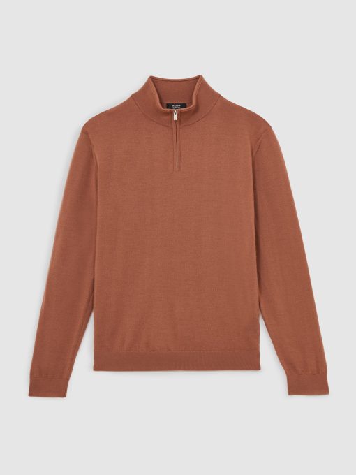 The Cinnamon Brown Blackhall jumper is a classic half-zip style, crafted from extra-fine merino wool. A finely ribbed hem and cuffs complete the look. 100% merino wool Funnel neck Half zip Ribbed hem and cuffs
