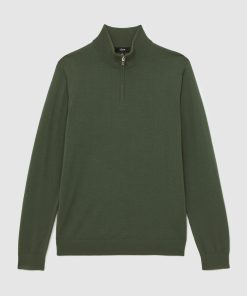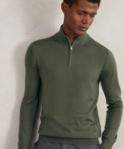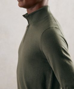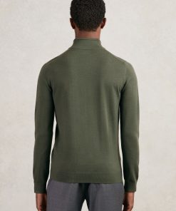 The Kale Green Blackhall jumper is a classic half-zip style, crafted from extra-fine merino wool. A finely ribbed hem and cuffs complete the look. 100% Merino wool Funnel neck Half zip Ribbed hem and cuffs The model is wearing a size M. Measurements of model: Height 6ft 2.5″ / 189cm.